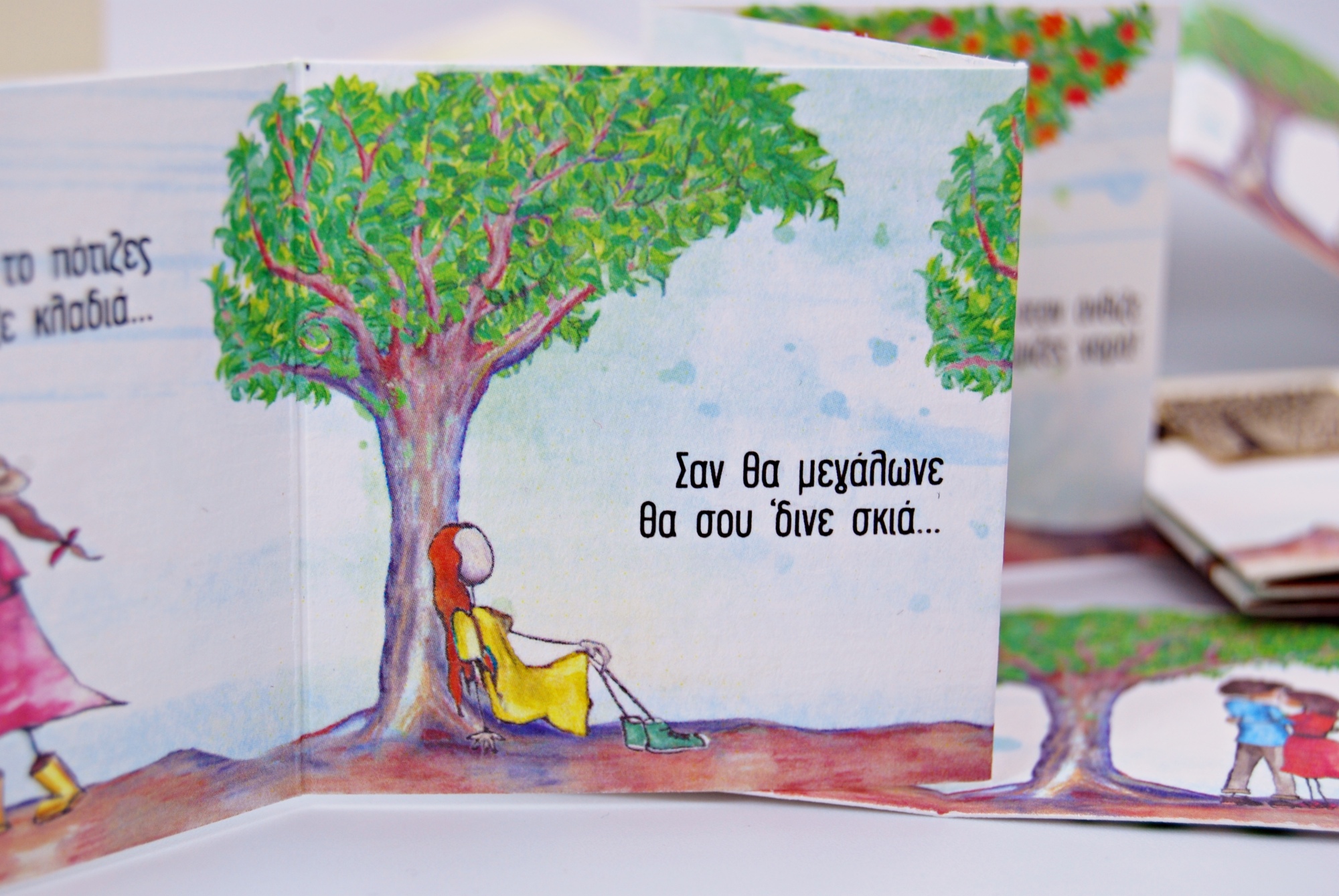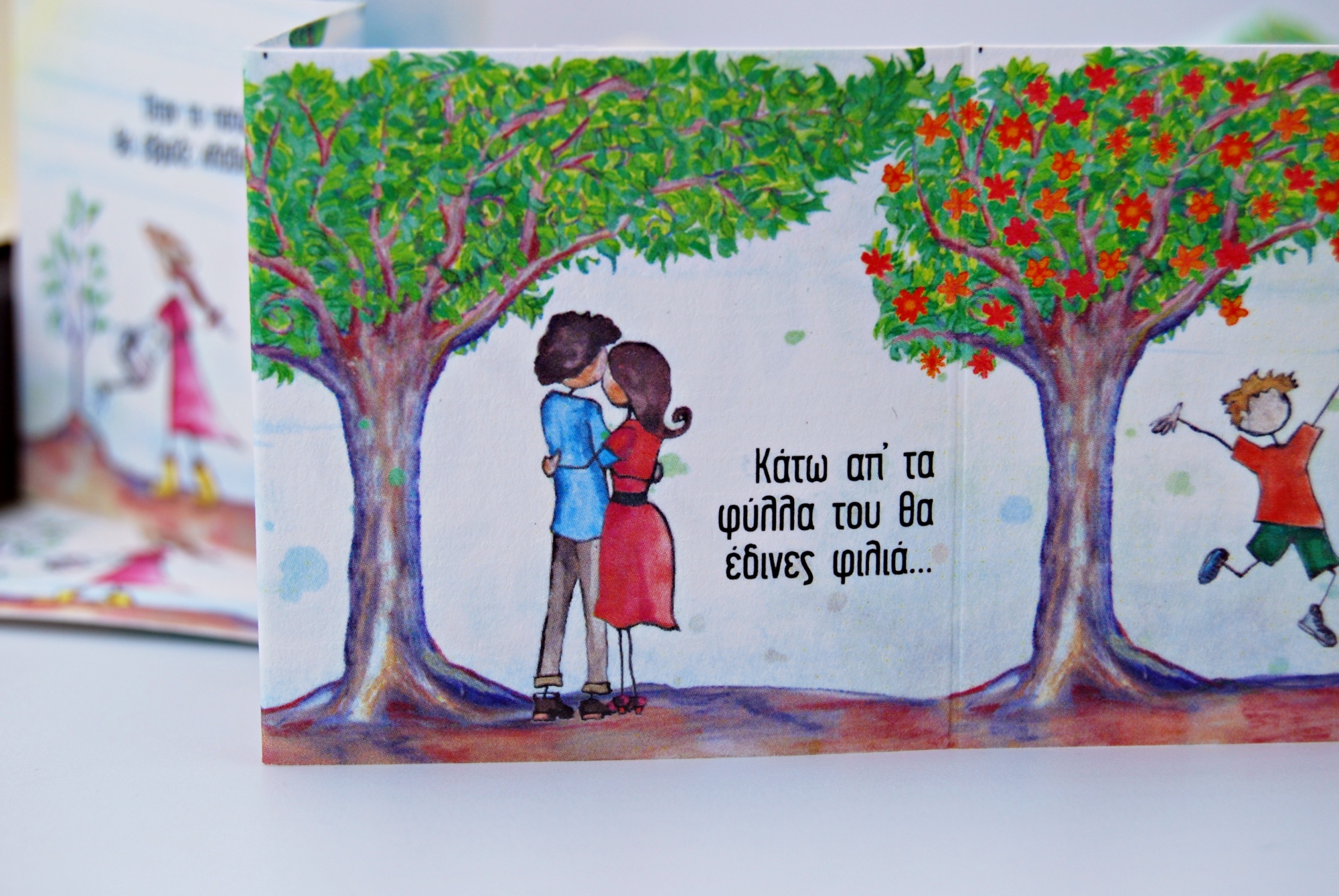 Το βιβλιαράκι που ξεδιπλώνει έχει φιλοτεχνηθεί από τους μόνιμους πια συνεργάτες μας, την Ello που το ζωγράφισε και τον Αντώνη που το έστησε, πάνω στην ιδέα και το ποιηματάκι της Μαργαρίτας.