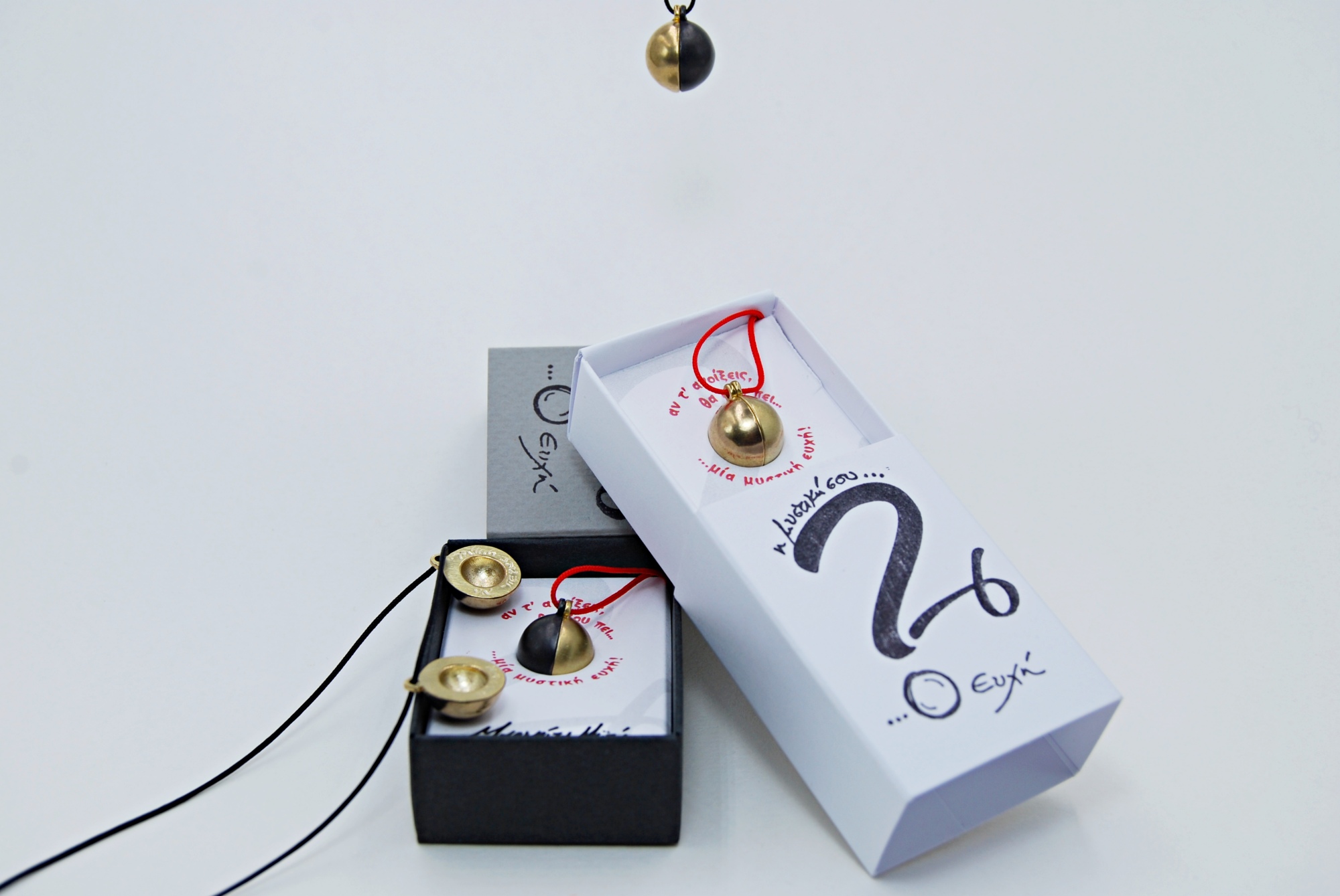 Ένα όμορφο κρεμαστό από μασίφ μπρούντζο που αποτελείται από δύο ημισφαίρια , αν το ανοίξεις θα διαβάσεις χαραγμένη την μυστική σου ευχή! Οι ευχές είναι χαραγμένες στο χέρι σε κάθε γούρι.