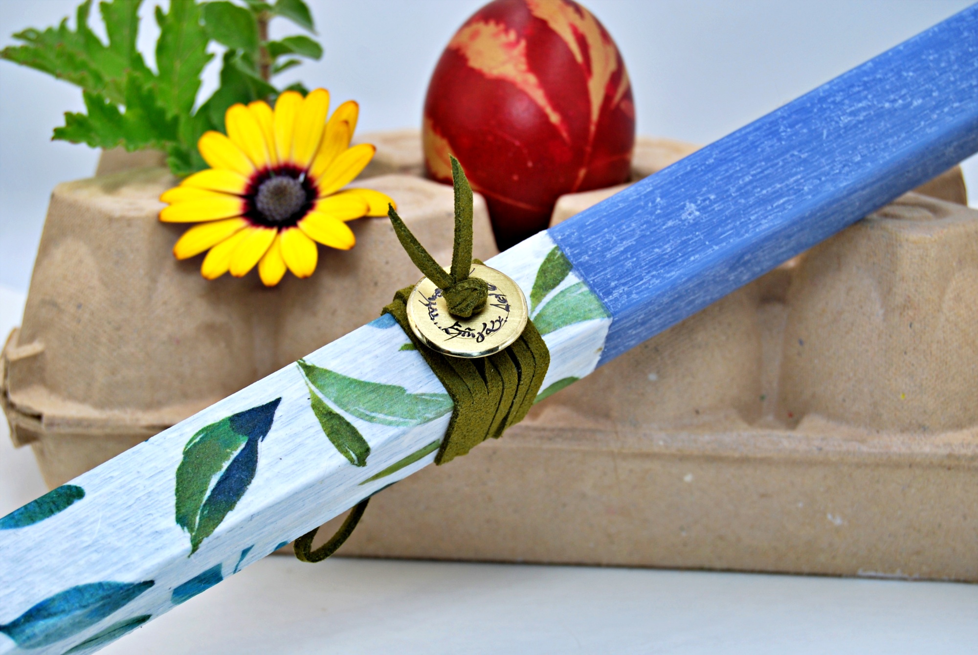 Οι κλασικές λαμπάδες μας με τα βραχιολάκια "κουμπί" με δερματίνη που τυλίγεται γύρω από τον καρπό.