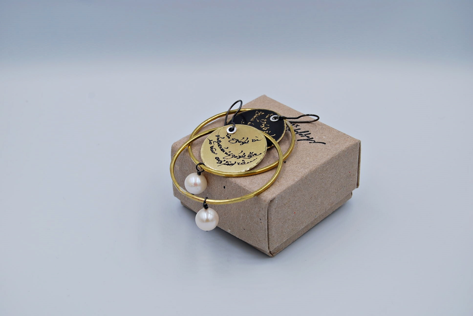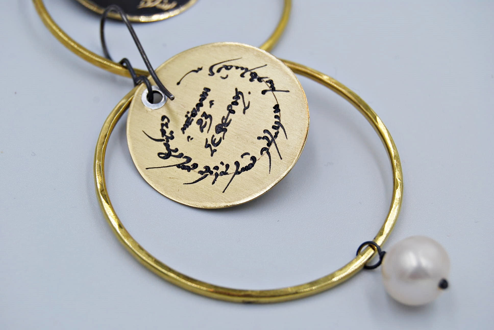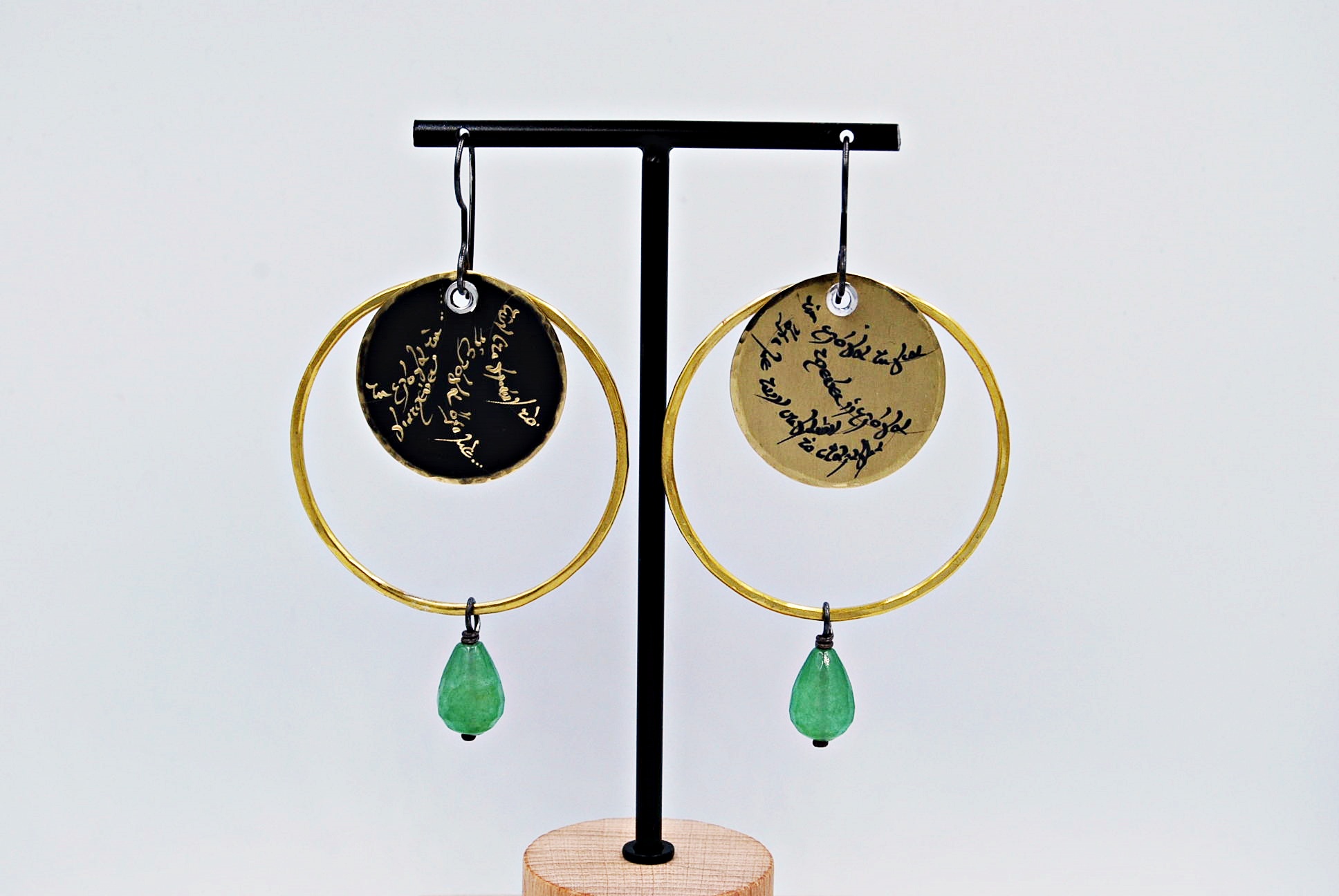 Impressive bronze earrings with hammered hoop. You can choose your preferred stone!