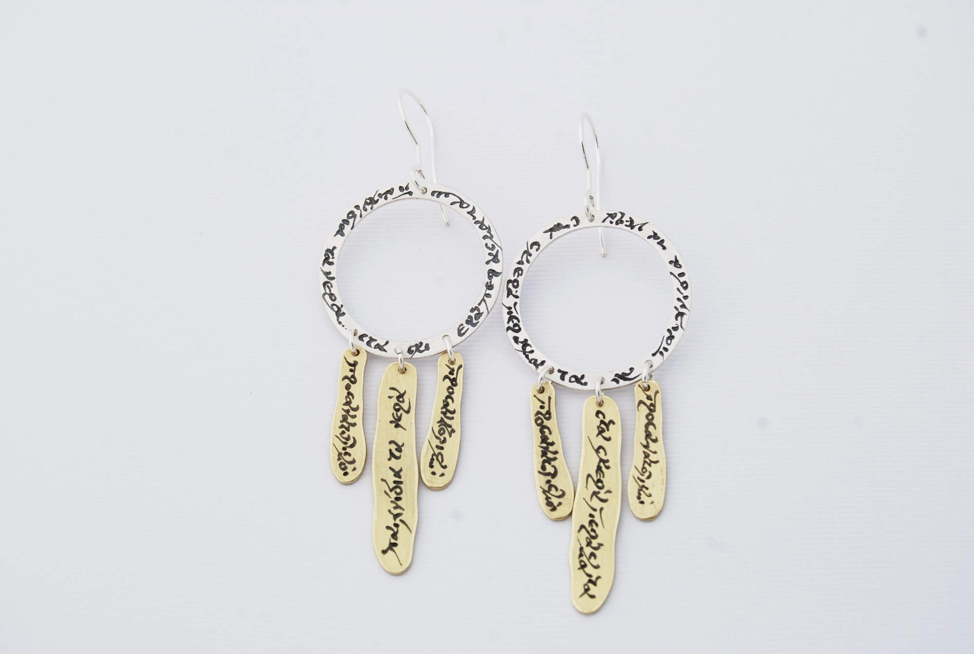 Bojo earrings in silver with bronze elements. An impressive pair for your Spring and Summer outfits! The earrings on offer have a poem from Elytis "Orientations".